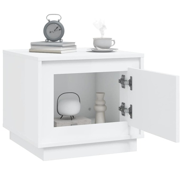 Add a touch of elegance to your living room with this stylish coffee table. Durable material: The engineered wood is of exceptional quality with smooth surface and also features strength, stability and resistance to moisture. Made of engineered wood, the side table is easy to clean with a damp cloth.Ample storage space: This sofa table offers ample storage space to keep your essentials well organised and within reach.Sturdy tabletop: The sturdy tabletop of the living room table is perfect for placing your drinks, food and other decorative items.Practical door: Keep your essentials free from dust by hiding them behind the door of this storage cabinet. Good to know:To make assembly as easy as possible, each product is delivered with a manual.The door can be installed on the left or right side.