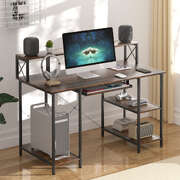 The keyboard tray, which can be smoothly pulled out, offers a convenient solution for storing your keyboard, keeping it accessible yet out of sight when not in use. The desk further boasts two layers of shelving, providing ample storage space for organizing your belongings and enhancing the overall storage capacity.