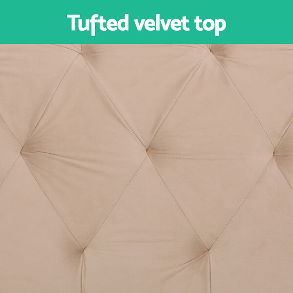 Look no further than the Noel Storage Bench from for storage with style and functionality. Constructed from a solid pine and fir wood frame with woven panels, the bench suits homes with a rustic, boho or Hampton's aesthetic. The tufted velvet top is filled with high-resilience foam for a comfortable, durable seat. Detach the top lid and find a generous storage space to fit clothes, toys, pillows, blankets and more. The sturdy metal legs keep the bench standing tall under pressure. The seat can support up to 100kg, while the storage compartment will support up to 80kg. Strong, stable and long-lasting, the Noel Storage Bench is the perfect solution to your living room storage woes. Get yours today.