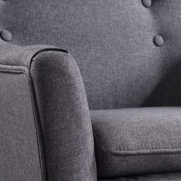 The armchair is a combination of fashion , that has timeless appeal! Upholstered in quality linen fabric, the chair is a full size chair with generous seating space. The extra thick foam padding ensures ultimate comfort with exceptional support. And the tufted backrest adds luxurious to the overall character of the chair. With reinforced wooden frame and sturdy tapered rubber wood legs, the Armchair is guaranteed to stand up to durable use for many years. What's more, with the neutral tones, the armchair is a perfect match with any home decor.