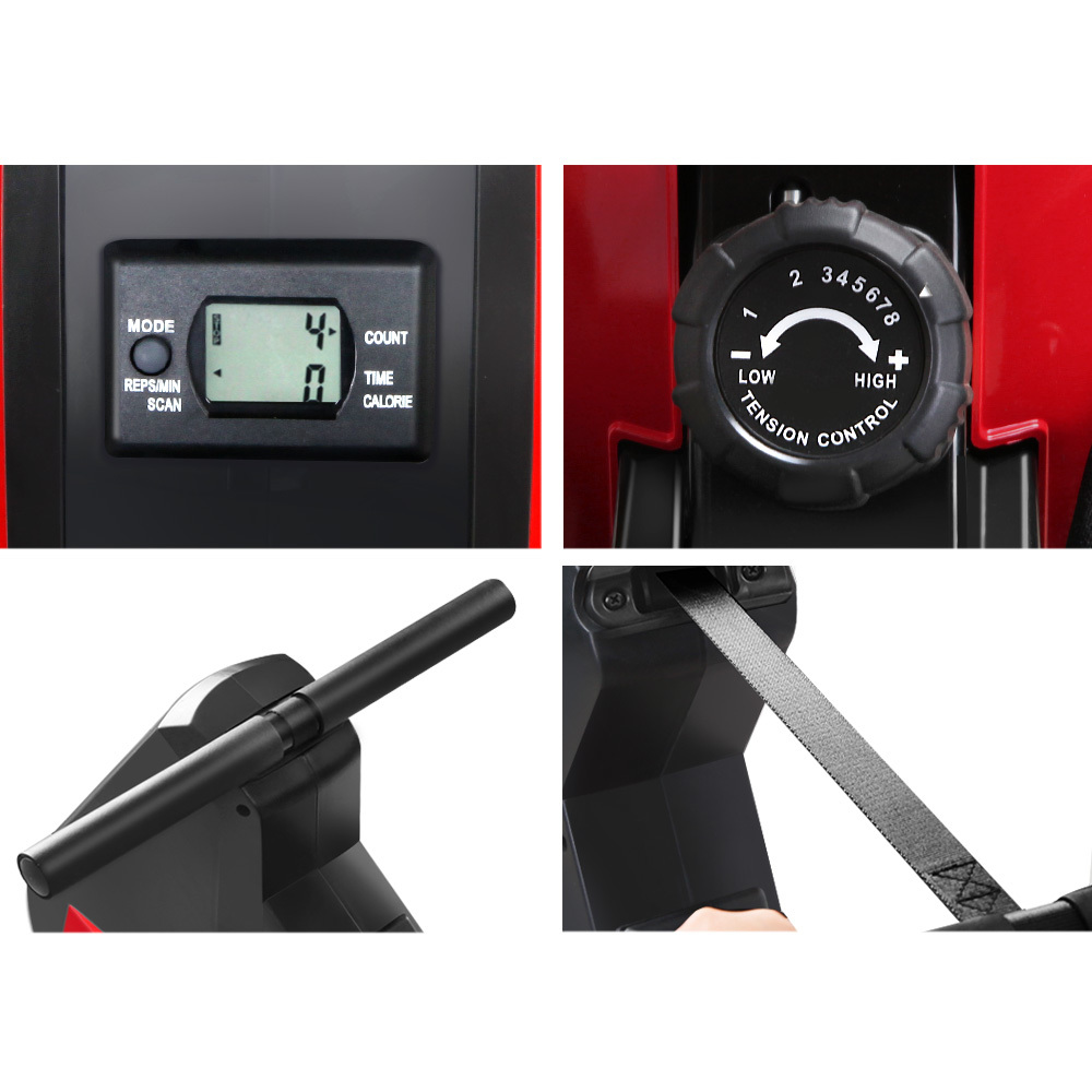 The Everfit Magnetic Flywheel Rowing Machine, utilizing a magnetic brake system, targets all the major muscle groups for well-toned abs, back and legs. Simply select the workouts you desire, with up to 8 levels of manual resistance, and monitor the progress on the large LCD display console. This fitness machine is just perfect for home fitness routines with its quiet operation and super sturdy frame.