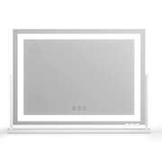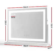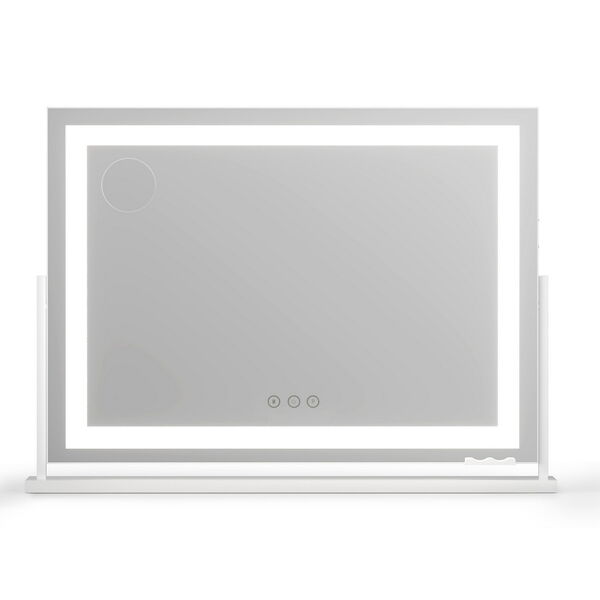 The Makeup Mirror features an extra-large 80x58cm surface with bright LED light strip illumination. Choose from 3 professional colour temperatures (warm/neutral/cool) with fully adjustable brightness for perfect visibility. The 360~ swivel base allows ideal positioning, while the side USB port offers convenient charging. Includes bonus phone holder and 10x magnifier - ideal for professional makeup application or home vanity use.