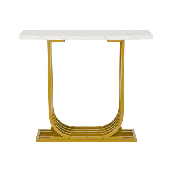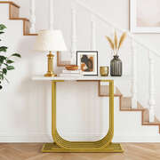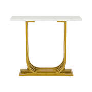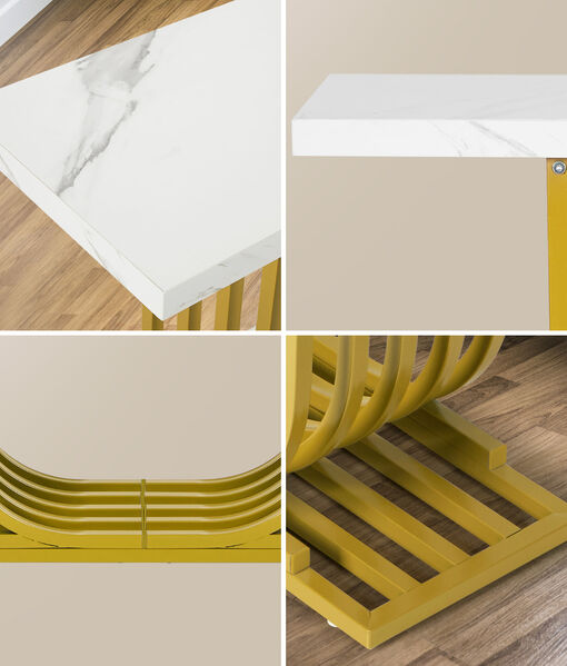 Crafted with high-quality materials with close attention to details, our console table is built to last. The unique curved gold-plated stand - an eye-catching feature that captures immediate attention - provides a solid structure for the console table, while the smooth and marble-like twin tabletop offers a sleek and sophisticated surface for displaying decorative items or everyday essentials. The clean lines and sleek design will complement any decor style with ease. Better still, its presence need not be at just the hallway but in every living space or room that warrants your creativity and imagination.