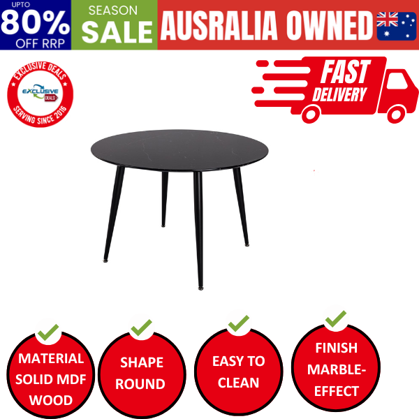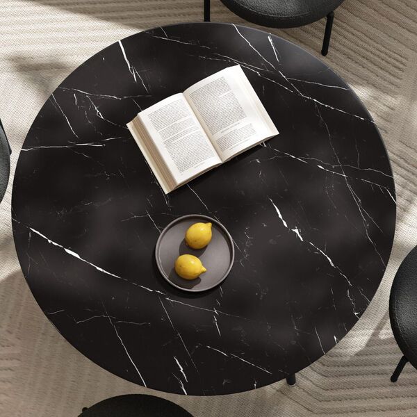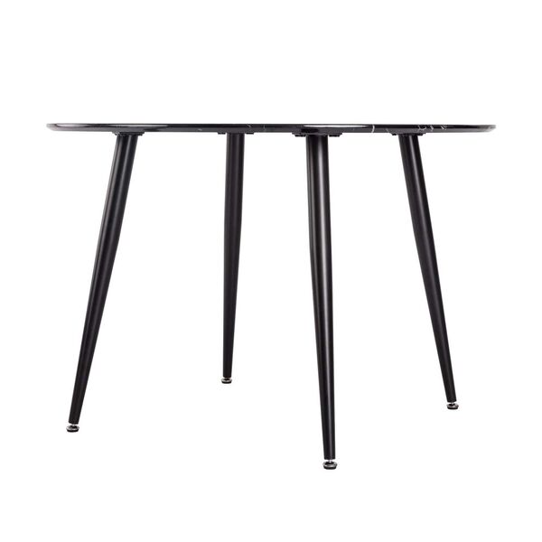 The table top is made of solid MDF wood with a round surface and coated with melamine laminated chipboard. This provides an elegant marble effect that looks like marble but is thinner than marble. And it's easy to wipe clean, so you don't have to worry about drinks or oil stains on the table, just gently wipe it to make your table look fresh.
