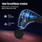 This handheld massage gun features an extended handle and curved design for easy grip and reduced hand fatigue. Perfect for targeting hard-to-reach areas like your back, it ensures a comfortable, full-body massage experience. The ergonomic shape enhances control, making self-care effortless and efficient while speeding up muscle recovery.. With a powerful high-torque motor, the massage gun allows for high-frequency vibration at 1000-2600 strokes per minute and penetrates deeply for muscle relaxation from the comfort of home. The massage gun uses long-lasting and efficient rechargeable lithium batteries that allow the gun to run for up to 2.5 hours. There are 5 speed levels to suit various purposes; from simply waking up your muscles to relieving lactic acid and assisting muscle recovery after exercising, or even intense professional-level massages. The non-slip rubber handle provides a comfortable grip to reduce hand fatigue, and the device operates quietly for a comfortable massage experience.. With 4 unique head attachments, the Massage Gun can help you dissipate fatigue, relax your muscles and relieve neck and back pain. Gets yours today and continue your fitness journey in comfort.