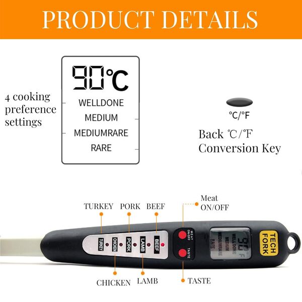 Meat Thermometer Digital Fork Fast Read LED Display Stainless Steel Probe For Grilling