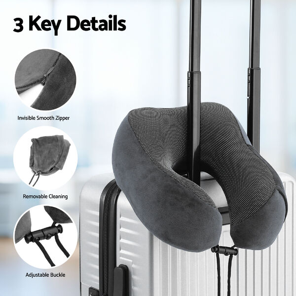 Memory Foam Travel Neck Pillow For Airplane Office And Car Use With Washable Cover Grey