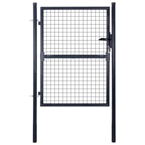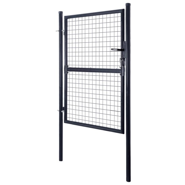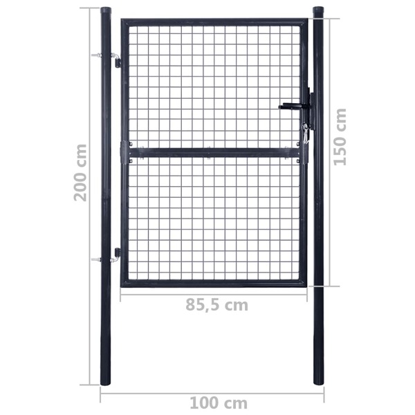 Featuring a high level of stability and durability, this fence gate can be used as a practical, modern entryway for your garden, patio and terrace. The garden gate is perfect in workmanship and manufactured from galvanised steel with a powder-coated finish, which is rust resistant and forms a sturdy construction. It has two side posts with bolt hinges for easy installation. Delivery also includes three keys.