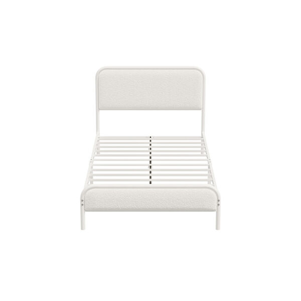 Metal Bed Frame King Single Size Bedhead Boucle Fabric Beige
