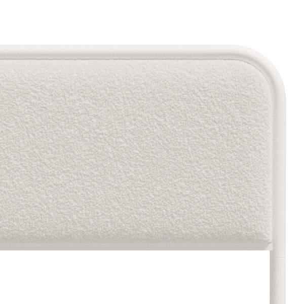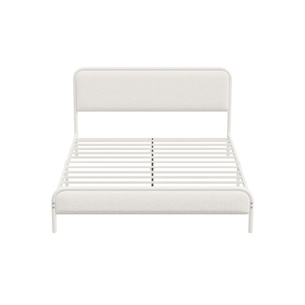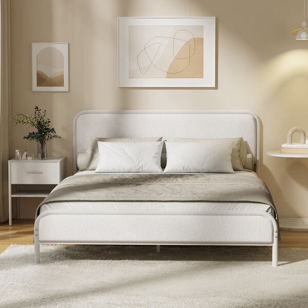 Metal Bed Frame Queen Size Bedhead Boucle Fabric Beige