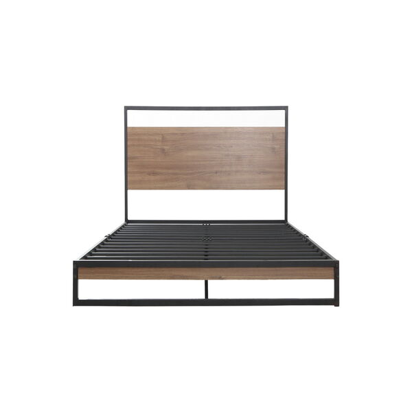 Metal and wood in perfect harmony. Our Dane Bed Frame is truly a stylish addition to any bedroom. Simple in design, the bed frame is meticulously constructed in sturdy steel and 15mm thick MDF with PVC for durability and strength. The sleek black powder-coated steel and dark wood accents lend real industrial cred to your bedroom for some standout décor. Across the frame, evenly spaced slats provide good weight distribution as well as ensuring that the mattress stays in place even with every twist and turn of your sleep. The central support beam further steadies the bed under robust use. Designed to fit standard size mattresses effortlessly, our eclectic bed frame is guaranteed to give you pleasant dreams with every sleep.