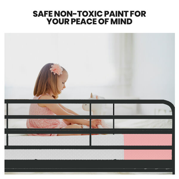 The strong tubular metal frame has a matte dark grey non-rust finish with matching fastenersso this bunk bed not only looks great, but is also built to last! Soft rubber feet ensure that the bed can be placed on any floor type without the risk of scratching. With safety in mind, this bunk bed has no sharp edges and smooth welded joints. It also features a solid and secure fixed ladder that is easy to climb without the wobbles of other less sturdy bunk beds.