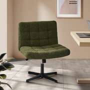 Mid Back Armless Office Chair Wide Boucle Green Desk Chair Home Office Seating