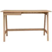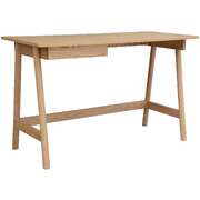 Made from the finest materials, this is a multi-purpose desk that adds usability and style without taking up much space. The desk looks great in a living room, home office, bedroom, or study room. It provides enough space for writing, office work, studying, or reading. The desk, designed in the Industrial Style, gives a sleek look to your room. It features a spacious top with a storage drawer underneath to keep your workspace well-organized.The desk has a fixed LHF drawer with full extension metal runners for smooth and long-lasting function. The drawer also has a black felt lining for an added touch of luxury. The desk in the Ash Natural finish is made of a combination of Ash wood, MDF, and Veneer Ash, all harvested in a sustainable way. The superlative combination of woods gives it great strength, water resistance, and beautiful looks. The easy-to-assemble desk comes with a one-year warranty.