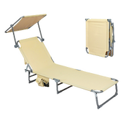 Minimalist Foldable Lounge Chairs with Canopy Khaki - Soft Cushion
