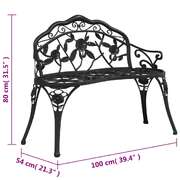 The garden bench can complement any garden or patio with its ornate decorations and romantic style, and it will be simply indispensable on cosy summer nights. Made of high-quality cast aluminium, this outdoor bench is weather-resistant and highly durable. Thanks to the cast iron legs, this patio bench is extra sturdy and strong. The detailed scrollwork and charming floral pattern add a classy accent to any garden or outdoor space. Sit back and enjoy your leisure time in comfort with this stylish bench! Note: In order to extend the life of your outdoor furniture, we recommend you to clean it regularly and do not leave it outdoors without protection unnecessarily.Clean: Use a mild soap solution.Storing: If possible, store in a cool, dry place indoors. If the product is stored outdoors, protect it with a waterproof cover. Wipe and dry the excess water or snow from flat surfaces after a rain or snowfall. Allow sufficient air circulation to avoid moisture-related damage.