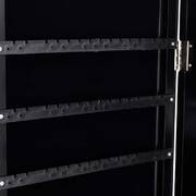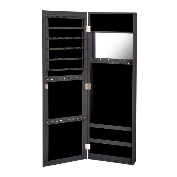 - Holds up to 81 pairs of earrings, 40 rings, necklace, etc. Features 3 spacious shelves and another mirror inside the door
