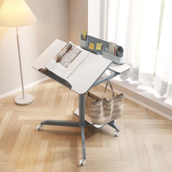 Mobile Home Office Sit And Stand Desk With Tilting Desktop