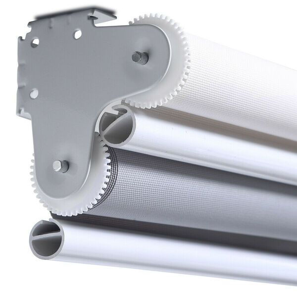 - Two roller blinds in one: 30% polyester + 70% PVC sun screen fabric combined with 100% polyester roller blind with blackout backing