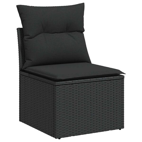 Modern - Garden Sofa Set with Cushions Couch 6 Piece Black Poly Rattan Acacia