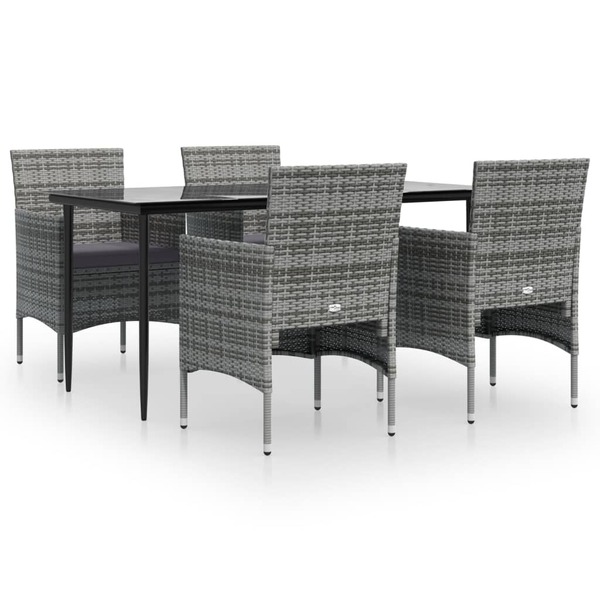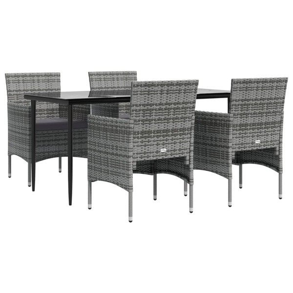 Modern Harmony: 5-Piece Garden Dining Set in Grey and Black with Plush Cushions