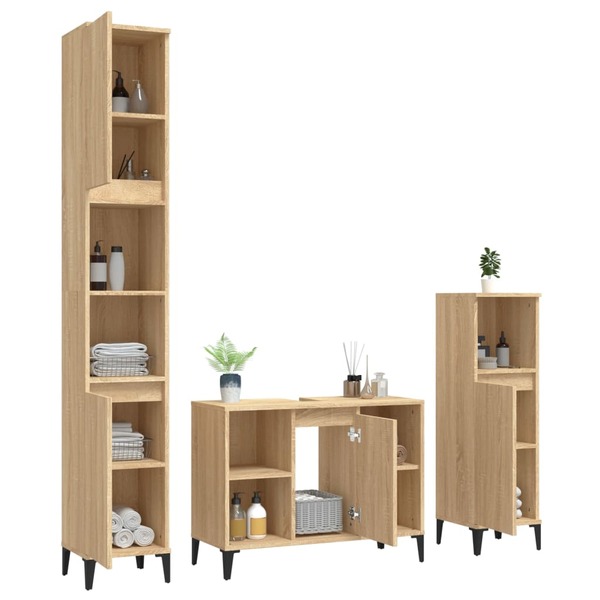 Contemporary 3-Pcs Sonoma Oak Engineered Wooden Bath Set