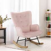 Modern Velvet Rocking Armchair Rubberwood Base - Pink