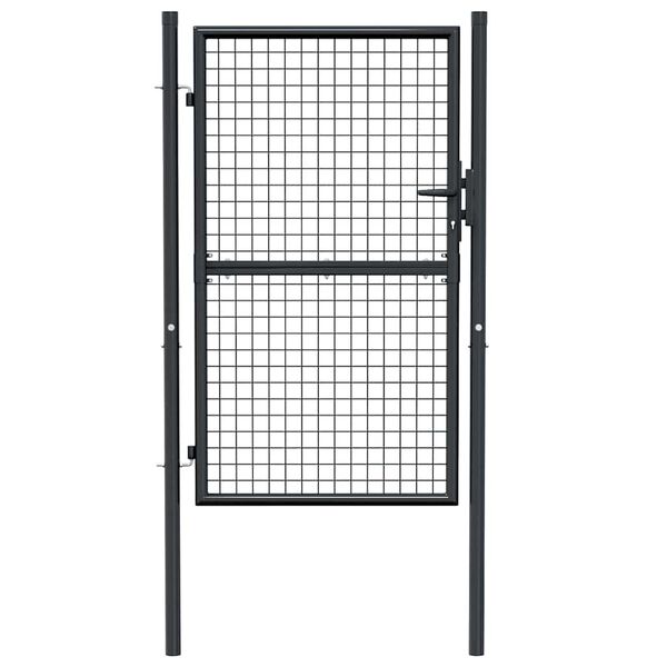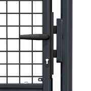 Featuring a high level of stability and durability, this fence gate can be used as a practical, modern entryway for your garden, patio and terrace. The garden gate is perfect in workmanship and manufactured from galvanised steel with a powder-coated finish, which is rust resistant and forms a sturdy construction. It has two side posts with bolt hinges for easy installation. Delivery also includes three keys.