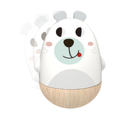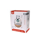 Adorable wooden bear tumble toy includes wind up music box. Young children love to play with topple toys. Wind the top around and set the music playing while baby plays with the toppling bear. Hours of fun.