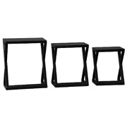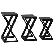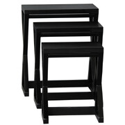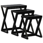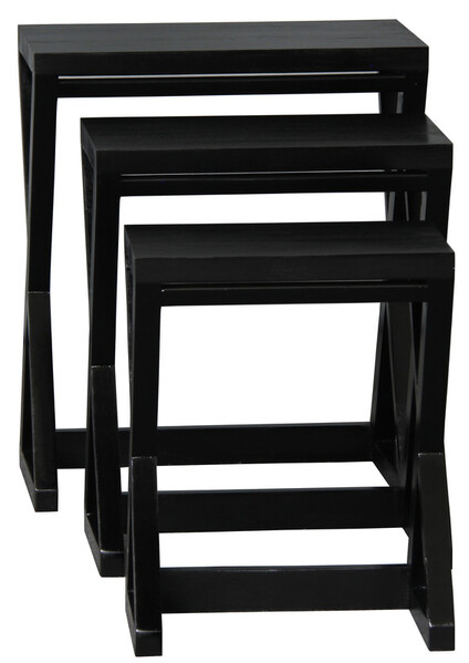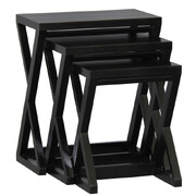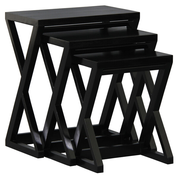 Introducing the Manhattan Nest of Tables, a striking set of three that combines contemporary design with the enduring beauty of solid mahogany timber, now available in an elegant black finish. These tables are more than functional pieces; they are a testament to modern elegance and sophisticated craftsmanship. The Manhattan Nest of Tables features a unique, angular design that sets them apart from conventional nesting tables. The sleek lines and geometric forms create a visually captivating effect, making these tables a bold statement piece for any interior. The rich, satin black finish adds a touch of luxury and refinement, perfectly complementing modern and minimalist decor styles. Each table in the set is thoughtfully designed to nest seamlessly within the other, offering versatile functionality while saving space when not in use. The solid mahogany construction ensures durability and stability, promising that these tables will remain a stylish part of your home for years to come. Whether used together as a coordinated set or individually throughout your living space, the Manhattan Nest of Tables provides ample surface area for your needs. They are perfect for displaying decorative items, serving as side tables, or providing additional space for entertaining guests. Arriving fully assembled, these tables are ready to enhance your home immediately. Their sophisticated design and high-quality craftsmanship make them an ideal choice for those who appreciate the finer things in life.