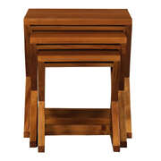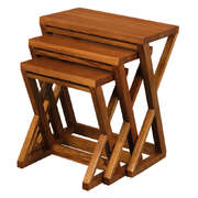 Introducing the Manhattan Nest of Tables, a striking set of three that combines contemporary design with the enduring beauty of solid mahogany timber. These tables are more than functional pieces; they are a testament to modern elegance and sophisticated craftsmanship.The Manhattan Nest of Tables features a unique, angular design that sets them apart from conventional nesting tables. The sleek lines and geometric forms create a visually captivating effect, making these tables a bold statement piece for any interior. The rich, satin finish of adds a touch of luxury and refinement, perfectly complementing modern and minimalist decor styles.Each table in the set is thoughtfully designed to nest seamlessly within the other, offering versatile functionality while saving space when not in use. The solid mahogany construction ensures durability and stability, promising that these tables will remain a stylish part of your home for years to come.Whether used together as a coordinated set or individually throughout your living space, the Manhattan Nest of Tables provides ample surface area for your needs. They are perfect for displaying decorative items, serving as side tables, or providing additional space for entertaining guests.Arriving fully assembled, these tables are ready to enhance your home immediately. Their sophisticated design and high-quality craftsmanship make them an ideal choice for those who appreciate the finer things in life.