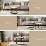 Upgrade your living space with the Nesting Coffee Table Set of 2 featuring a chic marble-effect tabletop and durable thickened metal frame. This nesting tables are perfect for modern homes, offering space-saving functionality with a stylish flair. The rounded edges enhance safety, while the smooth surface ensures easy cleaning. Whether you need a coffee table for your living room or a side table for your apartment, this versatile tables deliver on both style and practicality.