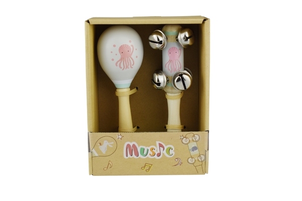 Octopus Wooden Maraca & Bell Stick Set