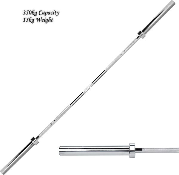 Olympic Weightlifting Barbell, 220Cm Long, 15Kg Stainless Steel, Home Gym Strength Training, Bench Press&Squat