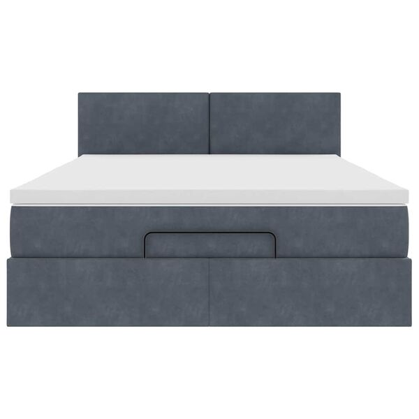 Dark Grey Velvet Ottoman Bed with LEDs & Mattress Queen Size Comfort
