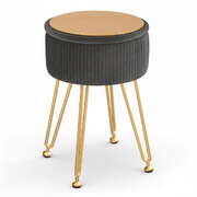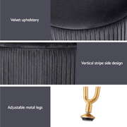 This round velvet footstool features a reversible table lid, vertical stripe design, durable MDF frame, high-resilience foam padding, and adjustable metal legs with floor protectors. Use it as a footstool, coffee table, and storage. Simple assembly required.