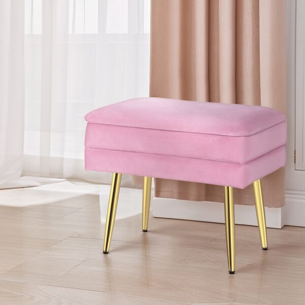 Ottoman Storage Foot Stool Velvet Pink