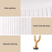This round velvet footstool features a reversible table lid, vertical stripe design, durable MDF frame, high-resilience foam padding, and adjustable metal legs with floor protectors. Use it as a footstool, coffee table, and storage. Simple assembly required.