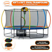 Outdoor 10x15ft Oval Trampoline w/ LED Basketball Hoop Reversible Pad