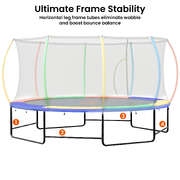 Water-resistant and built tough, it is perfect for year-round fun. With plenty of space for energetic sessions and an added basketball set for extra action between jumps, this trampoline promises endless outdoor excitement for the whole family.