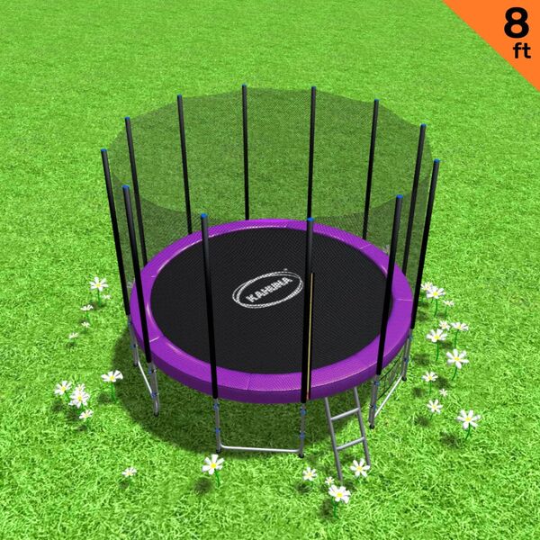 Outdoor 8ft Round Trampoline Purple Free Safety Net and Pad Kids