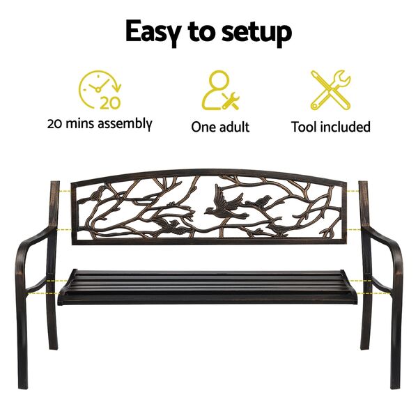 Outdoor bench seat garden steel outdoor furniture 3 seater park bronze