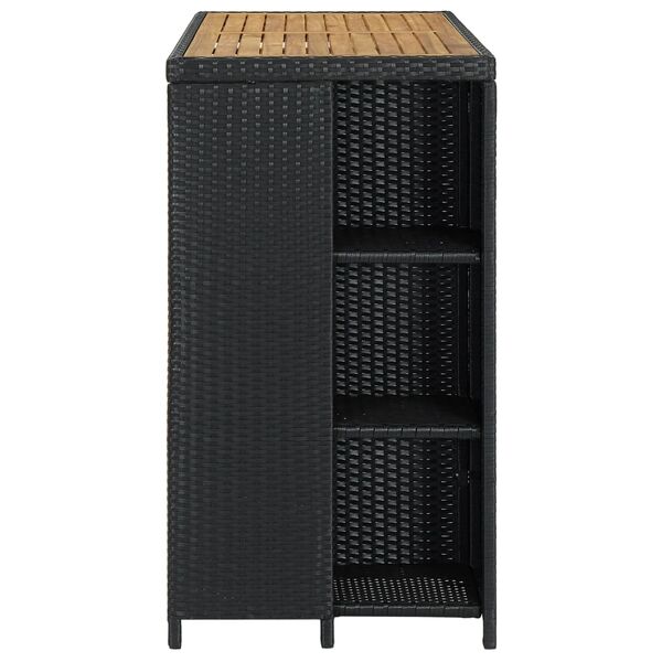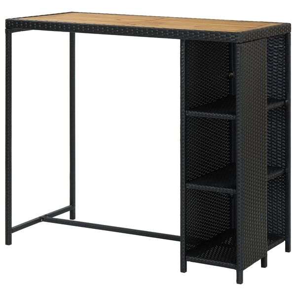 Outdoor Black Poly Rattan Bar Table with Storage Rack 120x60x110cm