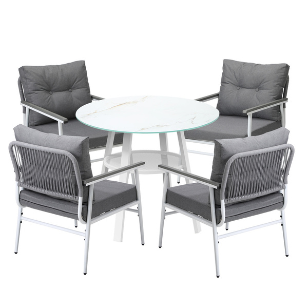 Outdoor Dining Setting Patio Furniture Set 4 Seater Tempered Glass Table
