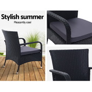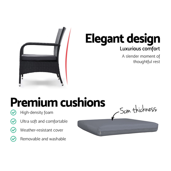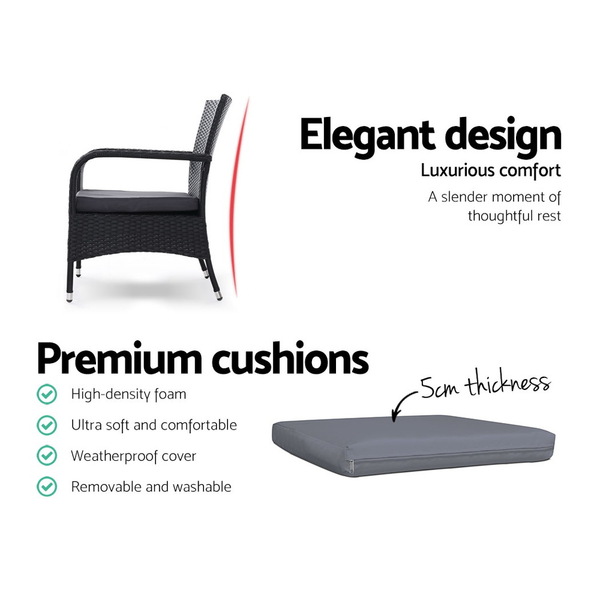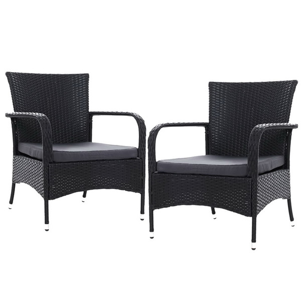 Outdoor Dining Chairs x2 Wicker Chair Patio Garden Furniture Bistro Setting Lounge Cafe Cushion XL Black