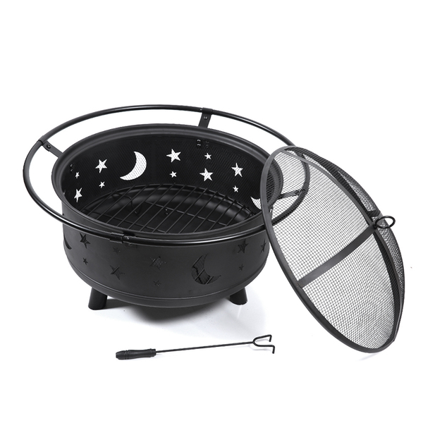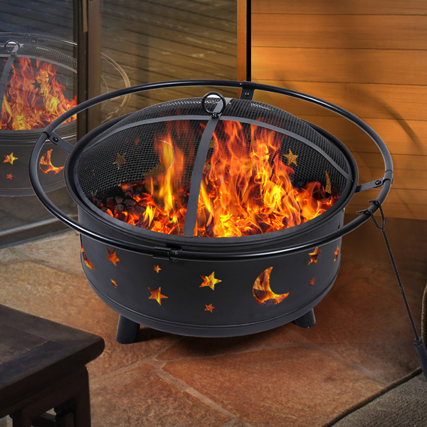 The outdoor garden fire pit is ideal for cool evenings, providing cosy warmth, lithe light which makes a beautiful, captivating, comfortable atmosphere. There is a steel fire bowl with heat resistant paint. This item is extremely durable which allows for a longer life span. Ideal for any outdoor gathering, lovers? bill and coo, parent-child communication or simply sit down alone.
