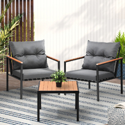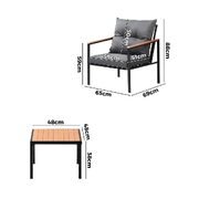 Naturally, we also ensure that the furniture is made with responsible and sustainable processes. Such as the eco-friendly wood material lining the armrests that not only looks good, but also display long-lasting qualities. Not to be outdone, the frame is made of heavy-duty powder-coated steel to enable robust use and high load bearing. Comfort is also not forgotten as all the seating features thickly padded high resilience cushions and an angled backrest that is perfected to let you seat for hours with nary a complaint. Not least, rounding off this exceptional set is a matching coffee table with a 5mm tempered glass top.