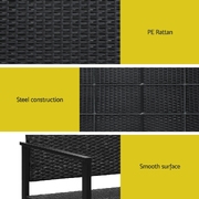 Enjoy a peaceful afternoon in the backyard with a 2-seater Garden Bench. This timeless garden bench is the perfect addition to your outdoor dining area thanks to its powder-coated steel frame and sturdy woven PE wicker. The chair is strong, sturdy and weather, insect and rot resistant, so you know it will be there come rain or shine. The woven rattan seat is not only stylish but comfortable and allows for better ventilation. The bench has a weight capacity of 150kg, and with its smooth armrests and wide legs, you're guaranteed a stable, comfortable seat. Use outdoors for a classic exterior look or use inside for a rustic touch to your décor What better way to spend spring than with company outdoors on your 2-seater Garden Bench.