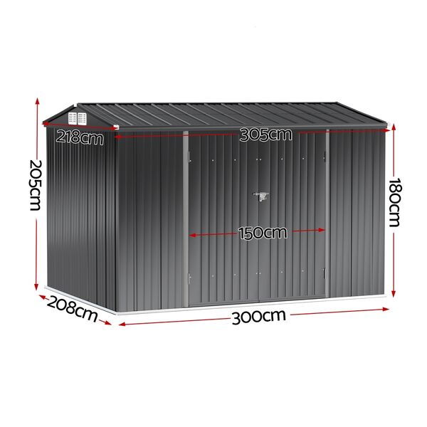 Outdoor Metal Garden Shed 3x2.18m Tool Storage Workshop House