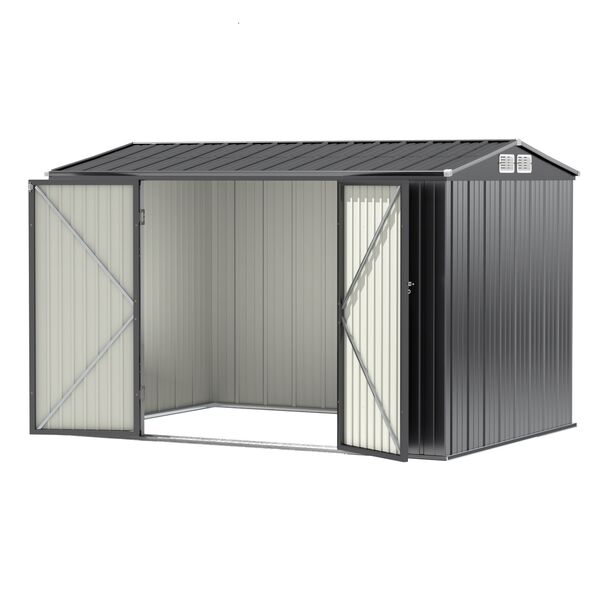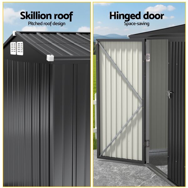 Keep your tools and gear secure with this robust storage shed, built to handle the Aussie climate. Made from corrosion-resistant galvanised steel and durable polypropylene (PP), it features a practical sloped roof to prevent water pooling during rainy seasons. The double hinge doors swing wide open for easy access to bulky items like mowers or bikes, while four integrated air vents reduce moisture buildup – perfect for humid coastal areas.No more maintenance worries: the zinc-coated steel frame (0.6mm thickness) and 0.25mm colour board panels resist rust and bushfire ash. Lockable doors add security for your valuables, and assembly is straightforward with pre-drilled parts. With its low-maintenance design and classic grey finish, this shed blends seamlessly into any backyard.
